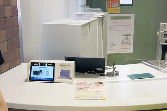 月に1回の保険証確認時に、「健康保険証」か「マイナンバーカード」のどちらかを事務の「総合受付」にご提出ください。