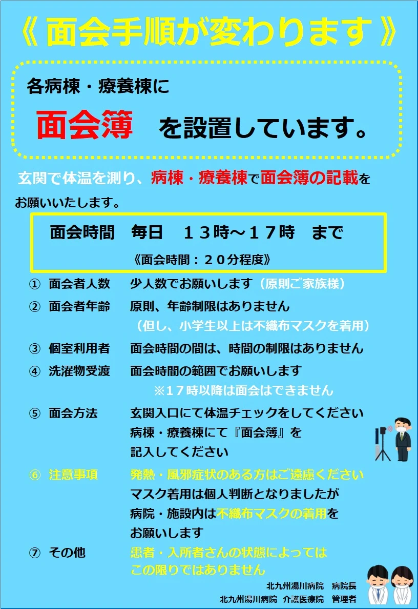 ※病状等で上記時間外に面会に来院された方は、必ず保安窓口にお声かけをお願いします。