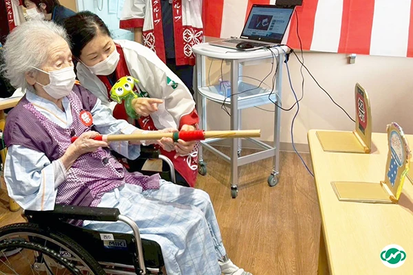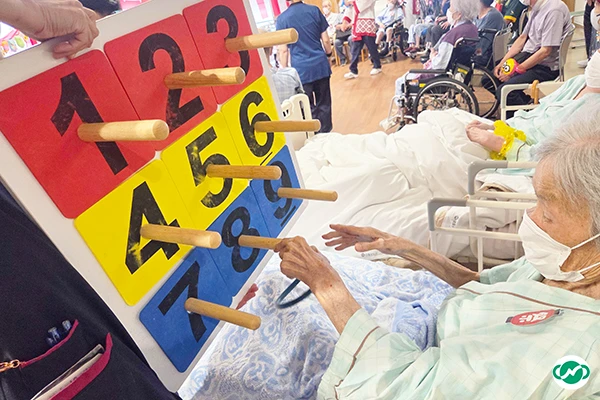 射的の的に当てた時や上手く輪投げやカエル飛ばしができた時などに、入所者さん・ご家族さんが一緒に嬉しそうに手をたたいて喜んでいる姿を見ることが出来ました。