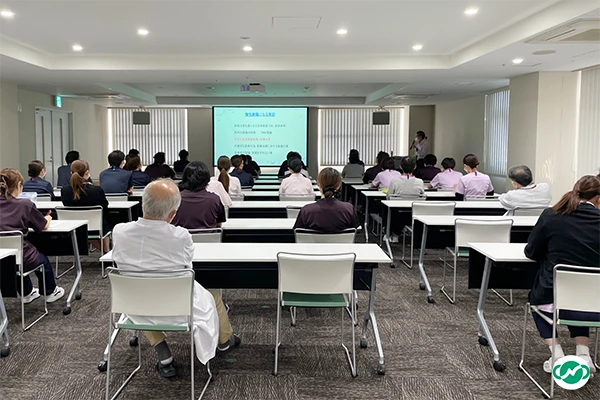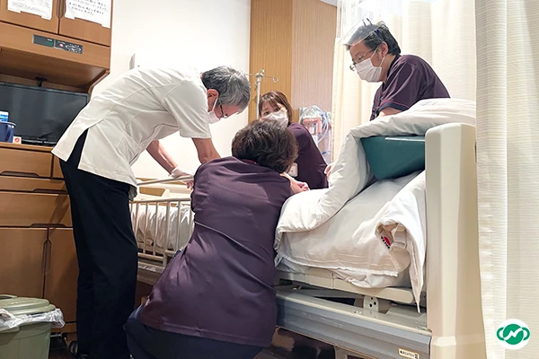 褥瘡対策委員会では、医師・看護師・介護職・リハビリ・栄養士・薬剤師・事務部が一体となり、褥瘡を発生させないための予防や、早期治癒に向けた取り組みを行っています。
